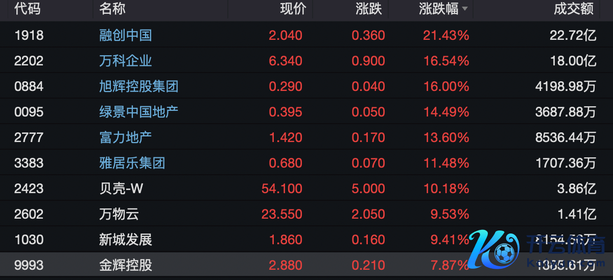A股方面,地产股也同步走强。放置A股收盘,房地产(申万)高涨约3.10%,领涨各大行业;其中,万科A、特发办事、卧龙地产涨停,中原幸福、中交地产、光大嘉宝等多只股票涨幅在5%以上。