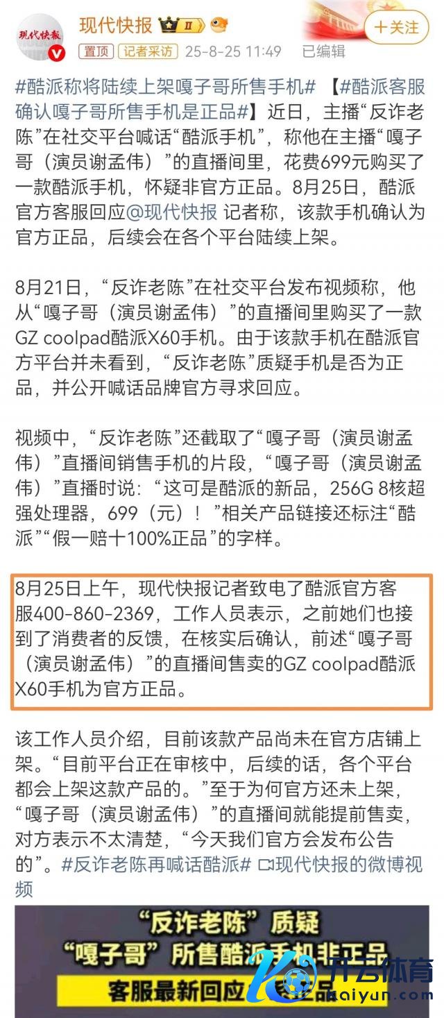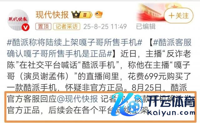 如今,酷派官方客服作念出回话,认定嘎子哥直播间所售卖的手机为官梗直品。而反诈老陈也低下了头,向对方说念歉。