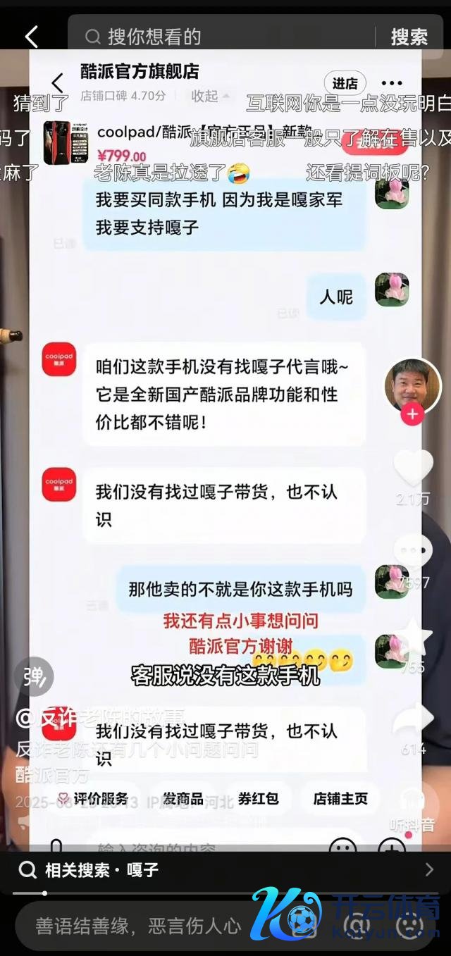 关于酷派官方客服的回话,反诈老陈提倡质疑,称此前有网友去问客服,但客服示意莫得找过嘎子哥代言、带货,也不料志。