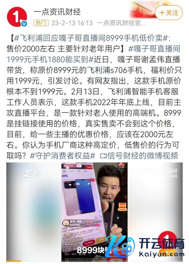2023 年,嘎子哥又因为一款手机翻车。其在直播间宣称该手机原价 8999 元,并称因阛阓总监误标价钱,故以 1999 元的蚀本价售卖。但后续有网友指出,同款手机在其他平台仅售 1880 元,质疑嘎子哥乖谬宣传。