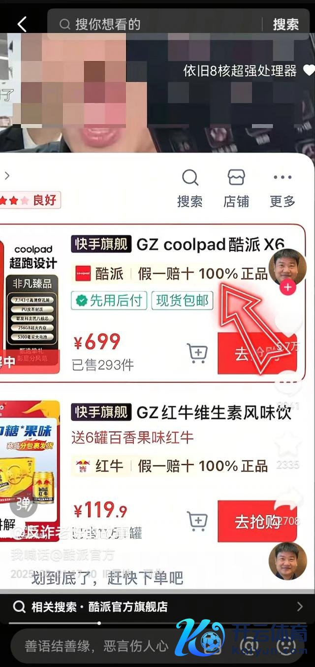 反诈老陈还在视频中放了一段嘎子哥在直播间带货该手机的片断,直播间聚首炫耀,该款手机为 GZ coolpan 酷派 X60,售价 699 元,假一赔十,100% 正品。