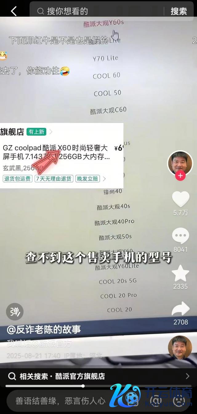 这一场闹剧,还得从反诈老陈 8 月 21 日发布的一则视频提及。视频中,反诈老陈喊话酷派手机官方,称有东说念主在网上卖你们的家具,你们到底有莫得这款家具?若是莫得,跟老匹夫说一声,别让别东说念主冒充官方来坑老匹夫。